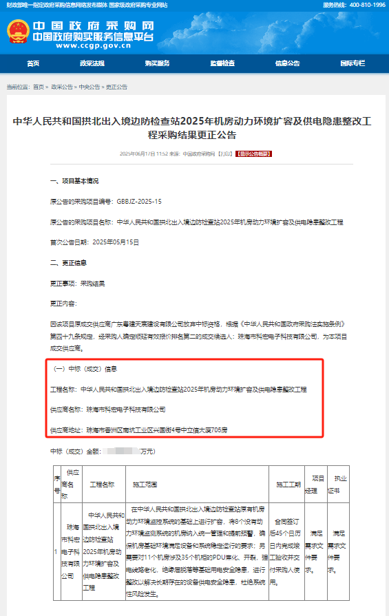 珠海市科宏電子科技有限公司憑借其在機房動力環(huán)境監(jiān)控領(lǐng)域的專業(yè)實力和豐富經(jīng)驗,贏得了此次項目的信任與委托。